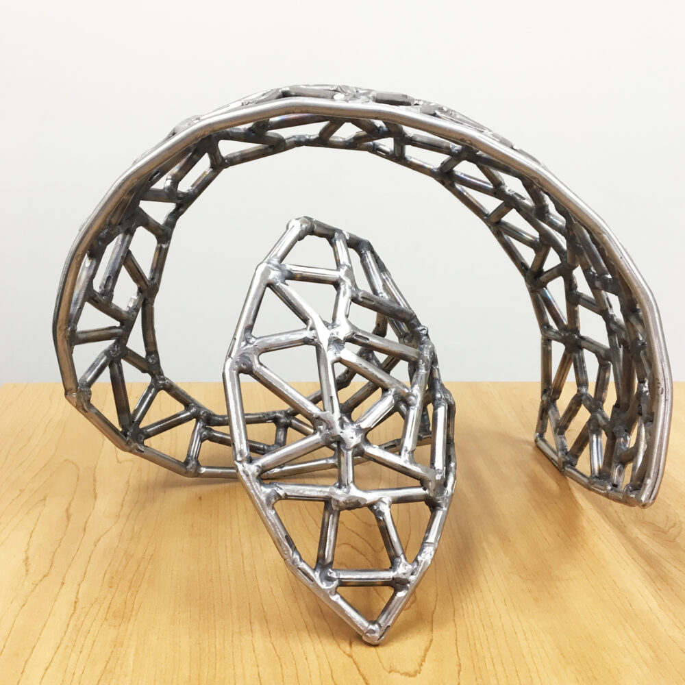 Diepenbrock is based in Jamestown, Rhode Island and after talking to Groov-Pin CEO Scot A. Jones, he thought our pins might be a good fit for his work. Jones sent him some stainless steel pins and while experimenting with them, Diepenbrock created a torsion shape, using the pins as a test for a larger piece. The largest of his torsion sculptures can be found on the University of Rhode Island’s campus.